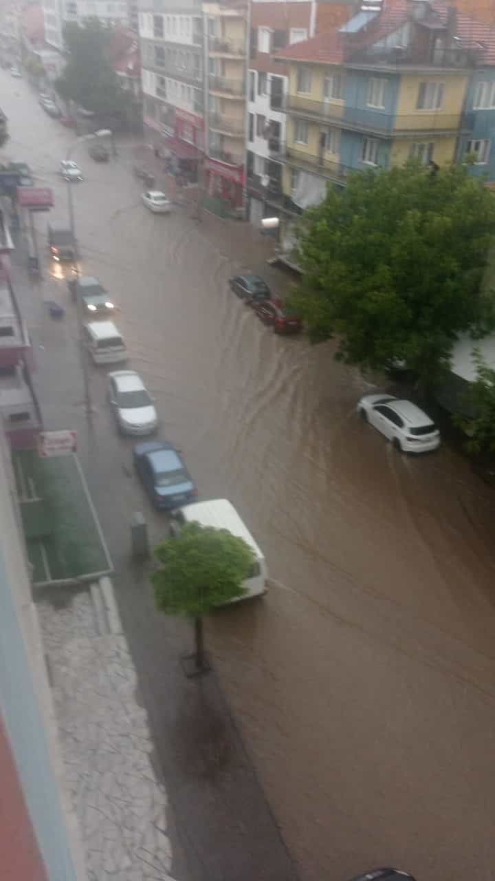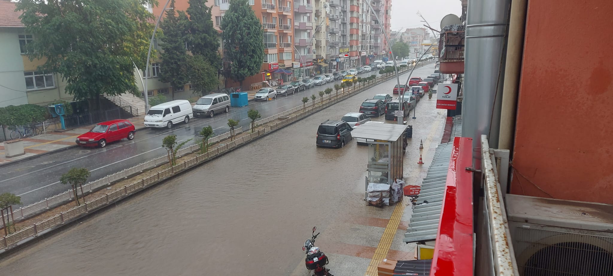 Uşak’ta başlayan yağış yaklaşık 20 dakikada Uşak’ı felç etti. Bazı Sokaklarda sel suları araçları sürüklerken sel suları nedeni ile trafik yoğunluğu yaşandı.