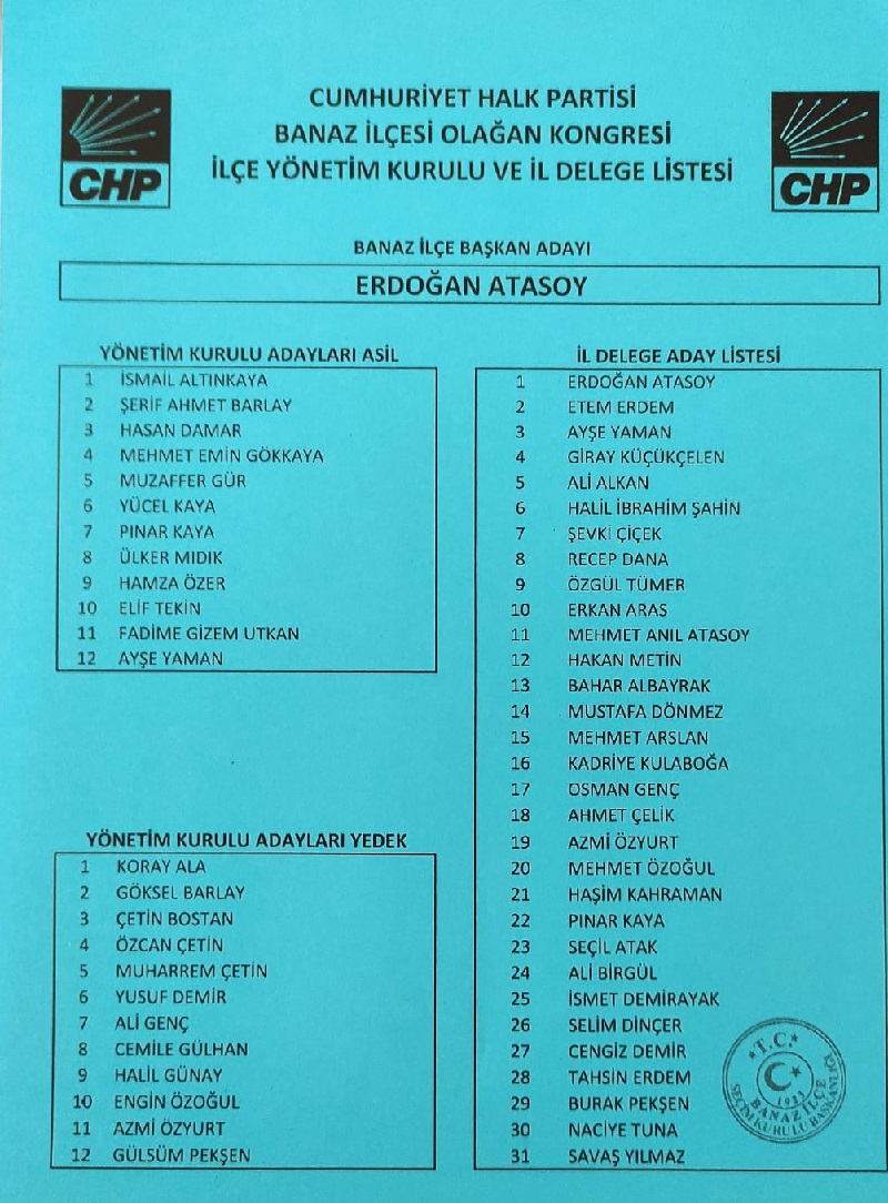 Uşak Millet Vekili Ali Karaoba , Eski Banaz Belediye Başkanı Tahsin Erdem, İl Başkanı Koray Akgün , önceki dönem Millet Vekili Özkan Yalım, eski Ziraat Odası Başkanı Ethem Erdem ve Cumhuriyet Halk Partililerin hazır bulunduğu bugün ki genel kurulda ise Cumhuriyet Halk Partisi Banaz İlçe Başkanı seçilen Erdoğan Atasoy’un listesindeki gençler dikkat çekti.