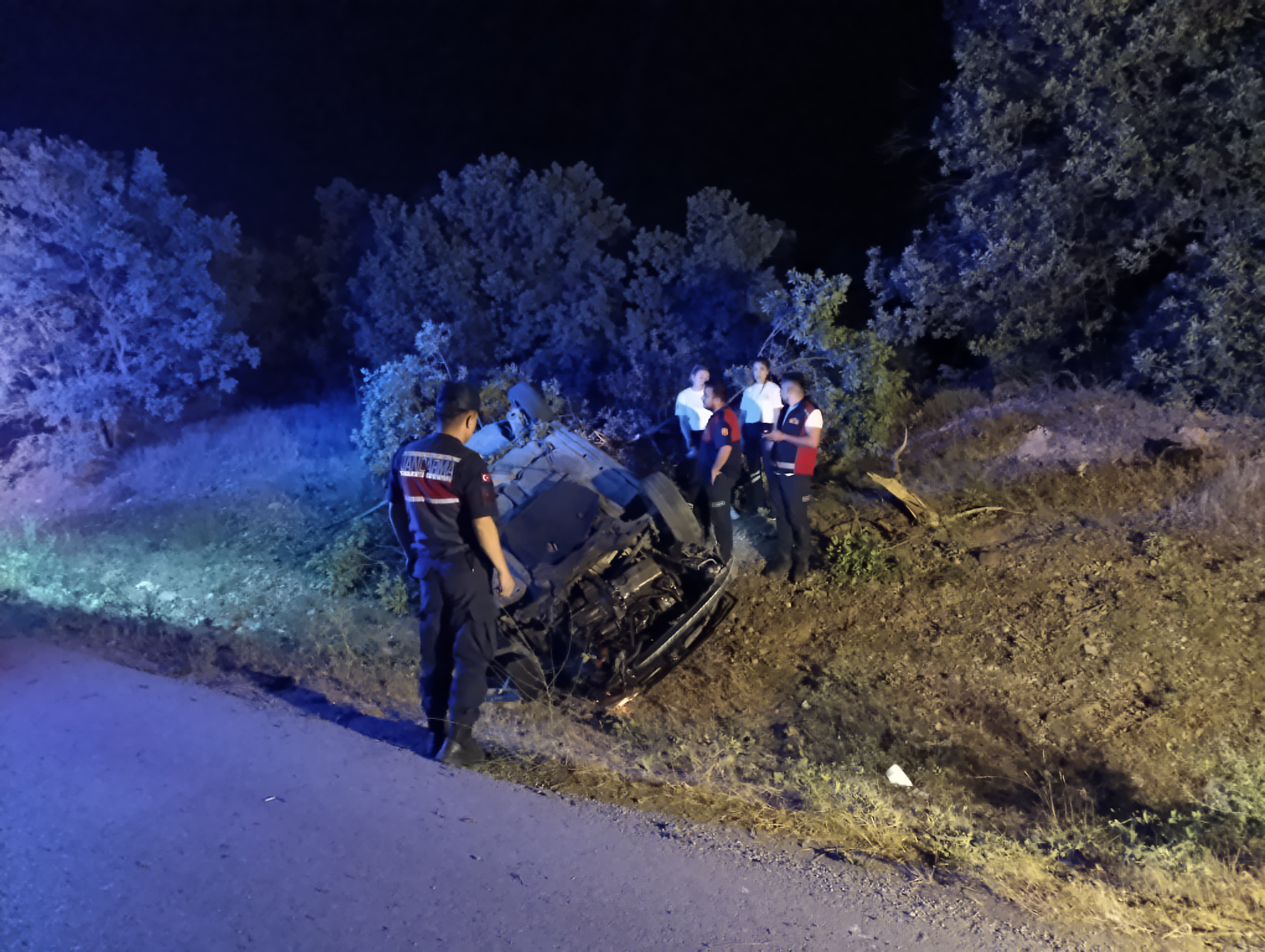 K. Tetik (36) idaresindeki 20 AAH 208 plakalı otomobil Banaz’dan Uşak yönüne seyir halinde iken Gedikler Köyü mevkiine geldiğinde sürücünün direksiyon hakimiyetini kaybetmesi sonucu yoldan çıkarak taklalar atan araç ağaçlara çarparak durabildi.